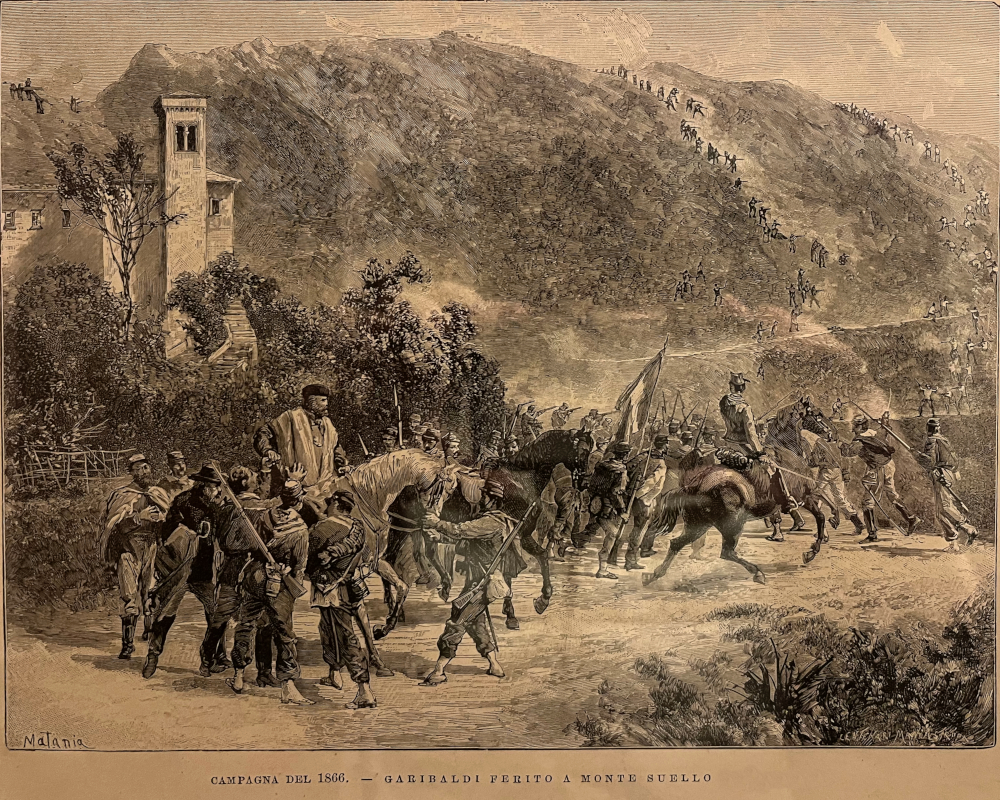 È la prima guerra del giovane regno quella che scoppia alle soglie dell’estate 1866, quando risalgono la valle Sabbia le camicie rosse guidate da Giuseppe Garibaldi. Anche questa volta sono volontari, mal vestiti e mal equipaggiati, che pure combattono contro gli austriaci ben più addestrati e meglio muniti, e prevalgono nella battaglia di Monte Suello il 3 luglio 1866. Di nuovo Bagolino, dove è sbocciato un più forte sentimento nazionale, si trasforma in una retrovia attiva e fornisce generosi contributi ai combattenti. Anche a Bagolino, come nel resto della valle Sabbia, le famiglie patriottiche e abbienti – i Glisenti, a Vestone i Riccobelli e i Guarnieri, a Bagolino gli Zanetti – donano denaro e mobilitano ogni risorsa.